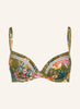 De Sunset Florals Bikini Top van Watercult is een voorgevormde bikini top met beugel.  Verliefd op het weelderige en het tropische. De rijkdom en warmte van echte levensvreugde. Met een verwarmende olijfgroene achtergrond. De bikini top straalt een tropische zomersfeer uit met zonovergoten tinten die doen denken aan rijp, sappig fruit met roze en koraaltinten in de hoofdrol.
