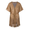 De Zahara Gold Kaftan van LingaDore laat je stralen in deze amandelkleurige kaftan met subtiele gouden lurex glansdraad.