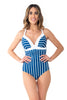 Het Love in Saint-Barth Badpak van het exclusieve badmode merk David is een echte eyecatcher! Het blauw met witte gestreepte badpak is voor iedereen te dragen. Het badpak heeft een V-hals en padded cups. De bandjes zijn gekruist en verstelbaar. De verticale strepen maken u optisch slanker. De witte stof rond de voorgevormde cups geven dit badpak net een chiquere uitstraling. Ook verkrijgbaar is de Love in Saint-Barth Bikini-Set.