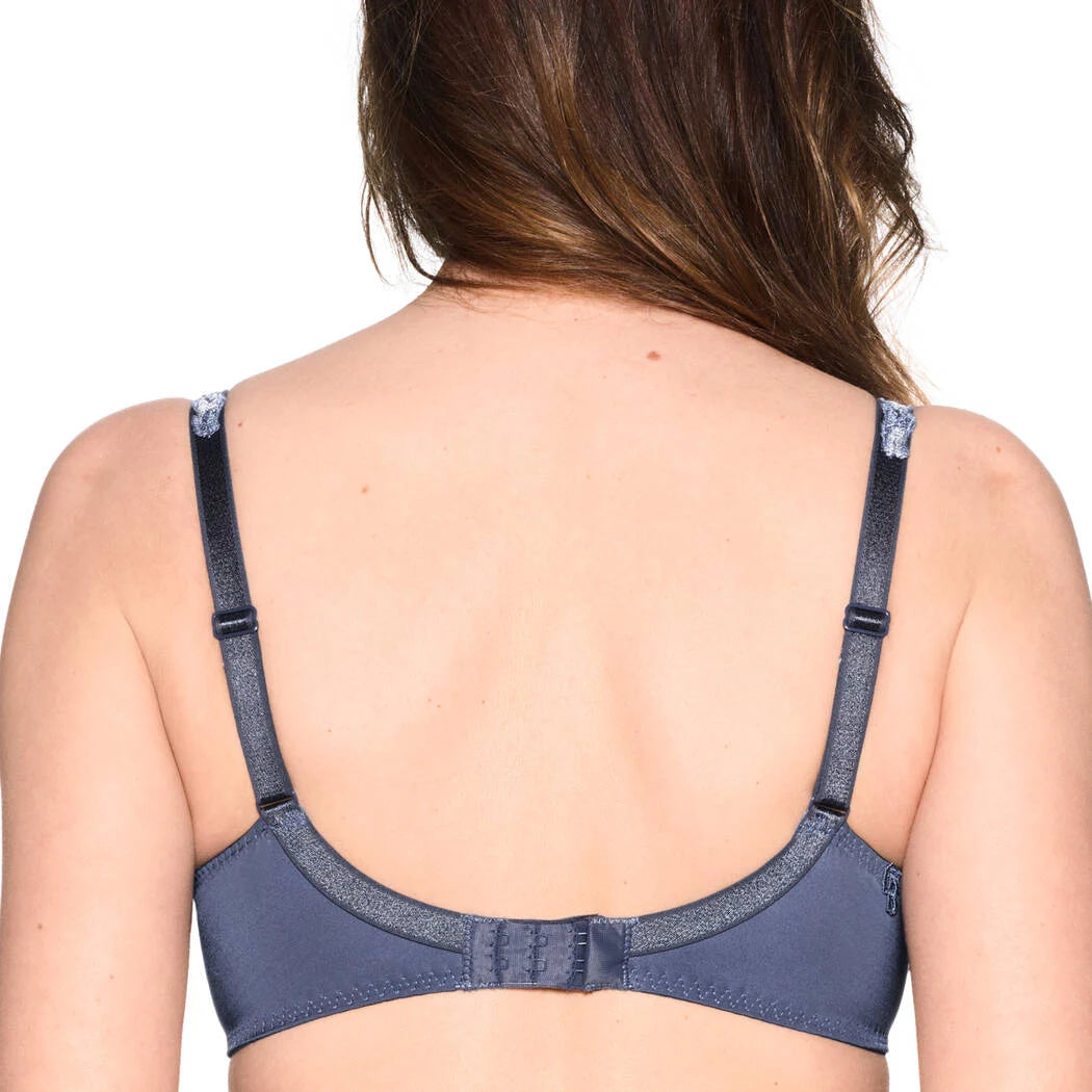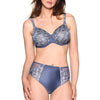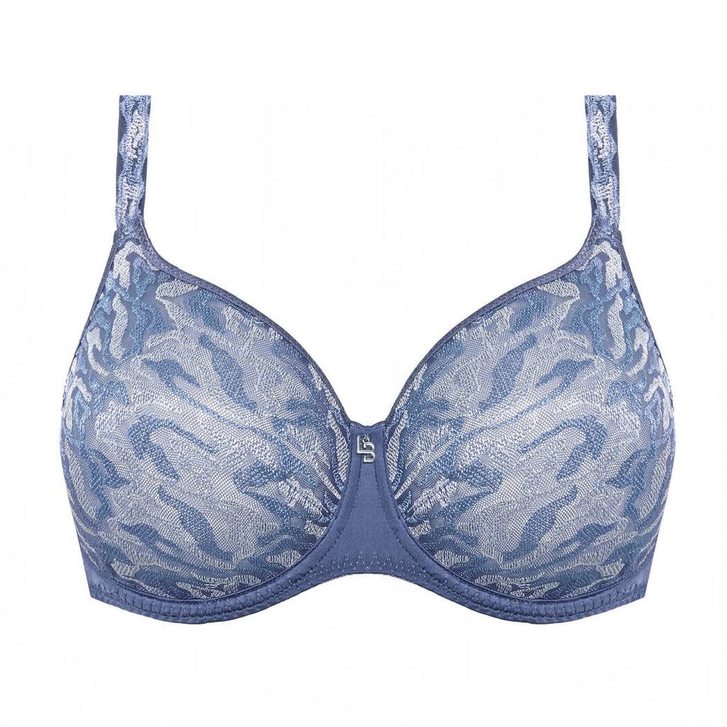 De Electric Waves Full Cup BH Bleu Jeans van Louisa Bracq dompelt je onder in een sterrenuniversum met deze stralende lijn waarvan het glanzende borduurwerk doet denken aan maanlicht, voor een look die draait om transparantie en verleiding. .
