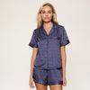 De prachtige Shortama Set Dark Denim van LingaDore heeft een blouse met korte mouwen en een kort broekje in een mooie satijnen stof.