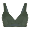 De Solid Army Bikini Top van LingaDore , met deze fashionable serie ben je helemaal klaar voor je vakantie! De groene army kleur in combinatie met gouden ringen aan de zijkant zorgen ervoor dat je niet onopgemerkt blijft deze zomer. Deze Solid Army Bikini Top is een padded triangle bikini en is voorzien van onzichtbare beugels en daardoor ook goed te dragen voor de grotere cup maten. De top heeft geen sluiting en geen verstelbare banden.