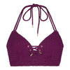 De Structured-Snob Bikini Top van LingaDore in deze paarse serie is een echte eyecatcher! De zachte structuurstof zorgt voor extra dimensie en samen met de gouden details & paarse kleur krijgt deze serie een luxe uitstraling. Deze Structured-Snob Bikini Top is een padded triangle bh is voorzien van onzichtbare beugels en is daardoor ook goed te dragen voor de grotere cup maten. Goed te combineren met de Structured-Snob Bikini Broekje. Ook verkrijgbaar in de Structured-Snob serie het prachtige one-shoulder badpak.