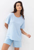 De Pyjama Emelie Kort van Mey is een 2 delige set van katoen, gestippeld in de kleur lichtblauw.