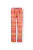 De Belin Lange Broek Ashanti Rood van het mooie merk PIP Studio heeft een Ashanti dessin met horizontale zigzagstrepen, die opgebouwd zijn uit bloemen, vlinders en blaadjes.