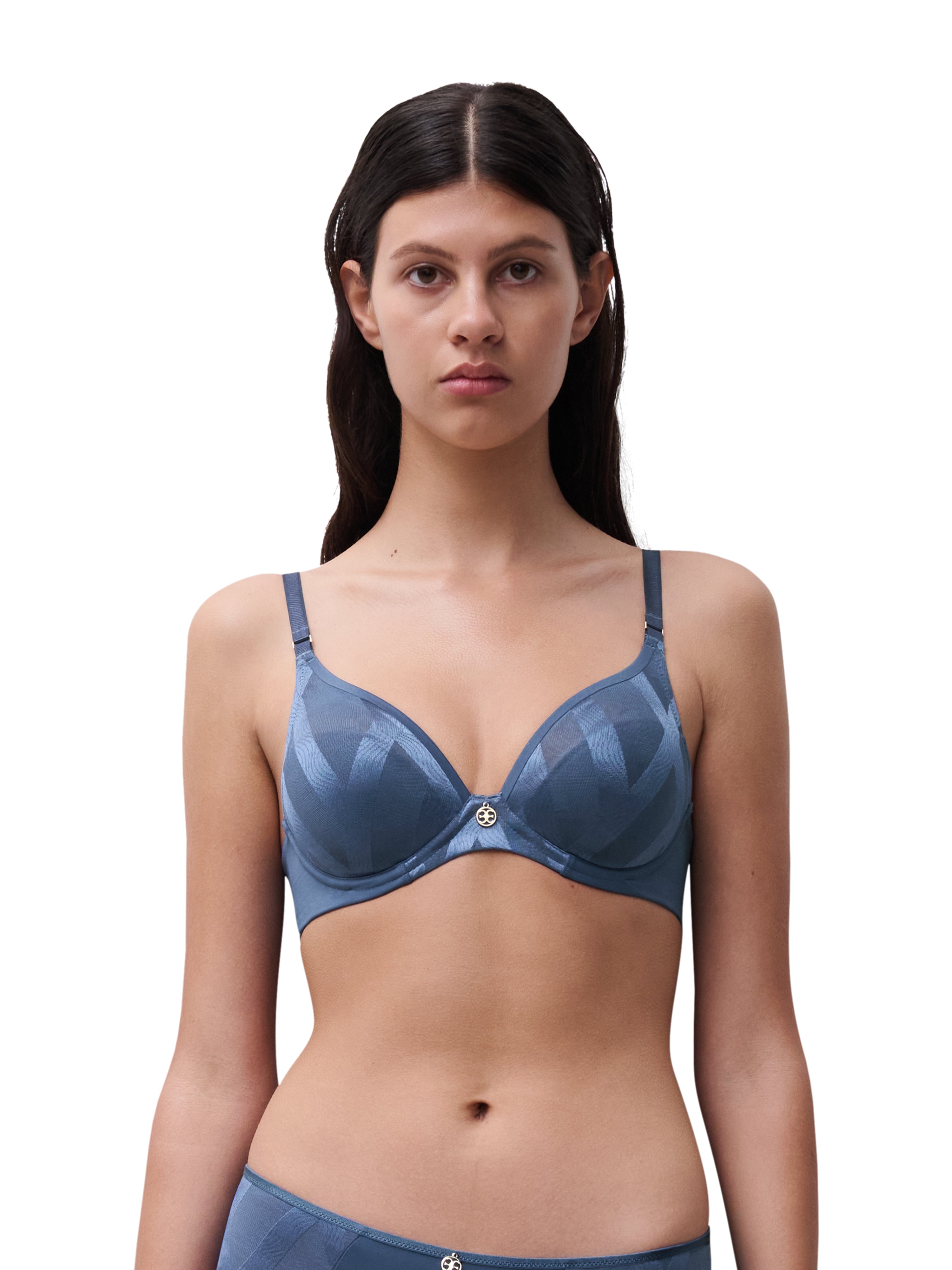 De Glaze Voorgevormde BH Blue Jeans van Chantelle is het essentiële in alle elegantie, een perfecte combinatie van mat en glanzend. Een moderne en technische lijn die subtiel verfraait.