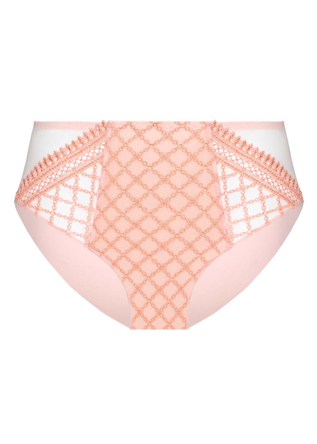 De Paco Hoge Slip Sun Stone van Louisa Bracq is door zijn vele details een lust voor het oog. Door de broderie van kettingen en doorzichtige stukken is hij stoer maar ook sexy.