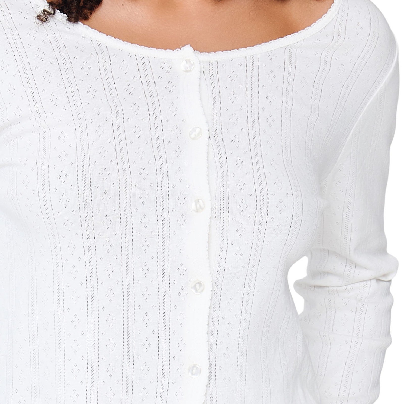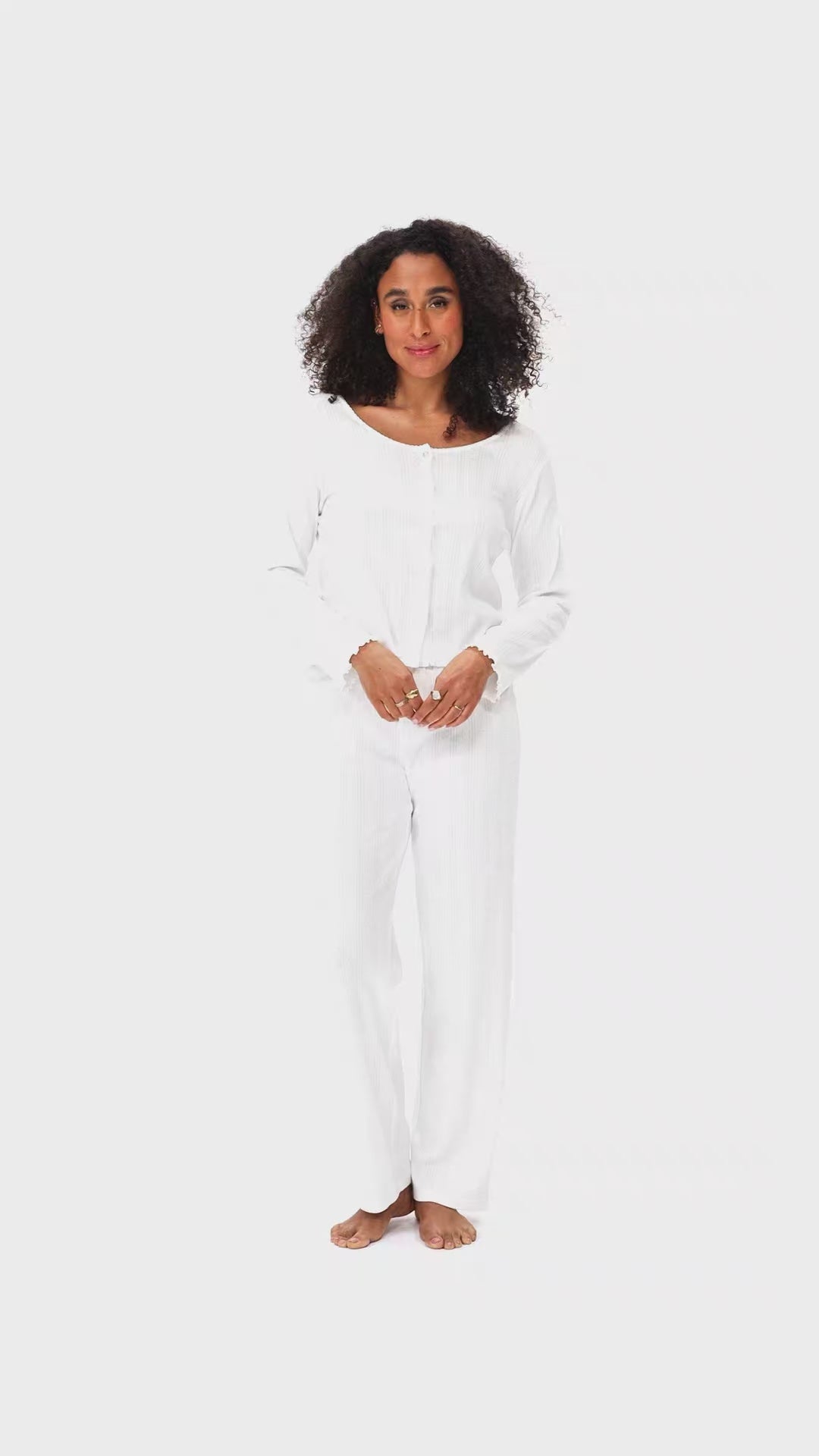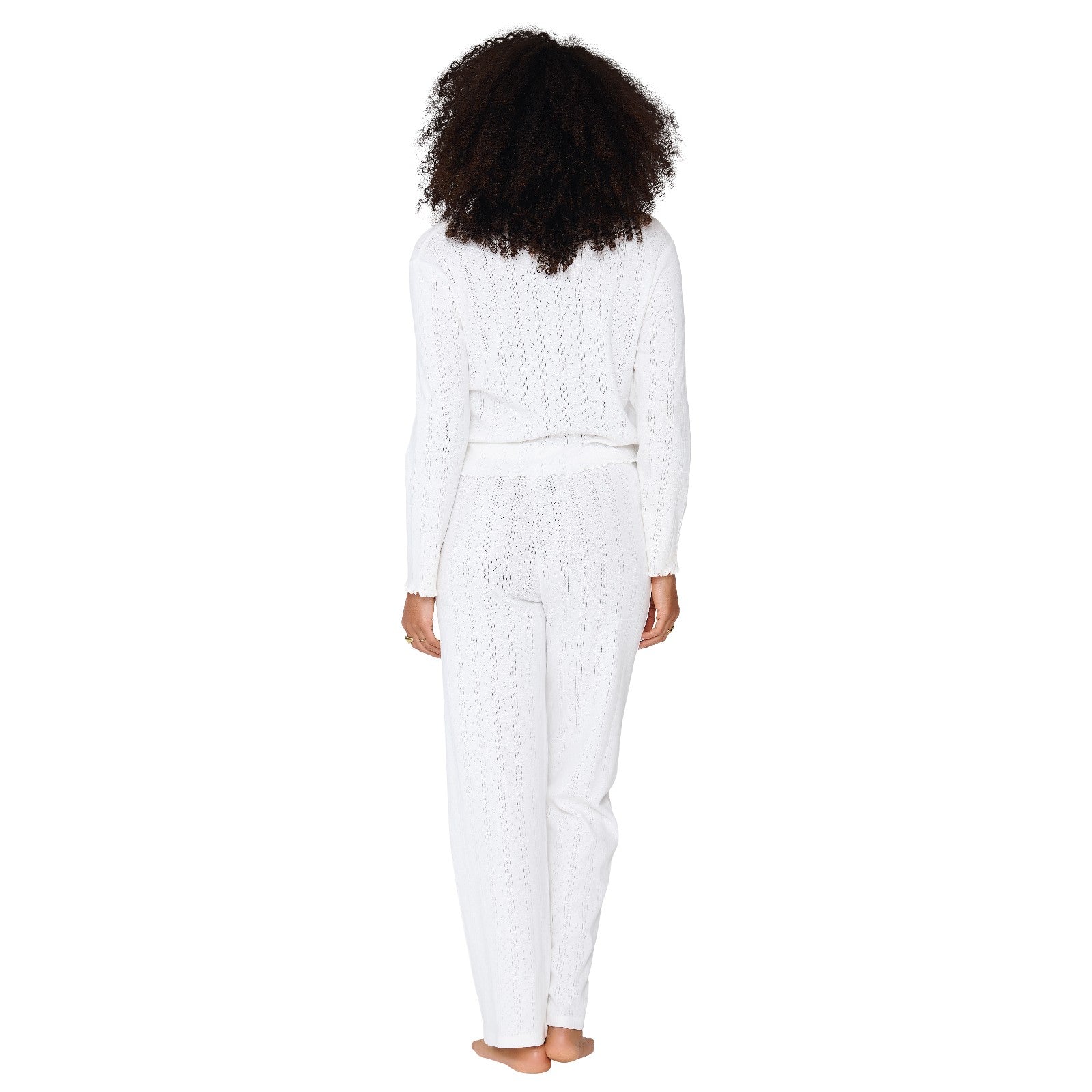 De Pyjama Set Off-White is een romantische set van LingaDore. De witte set bestaat uit een top met lange mouwen en een lange broek.