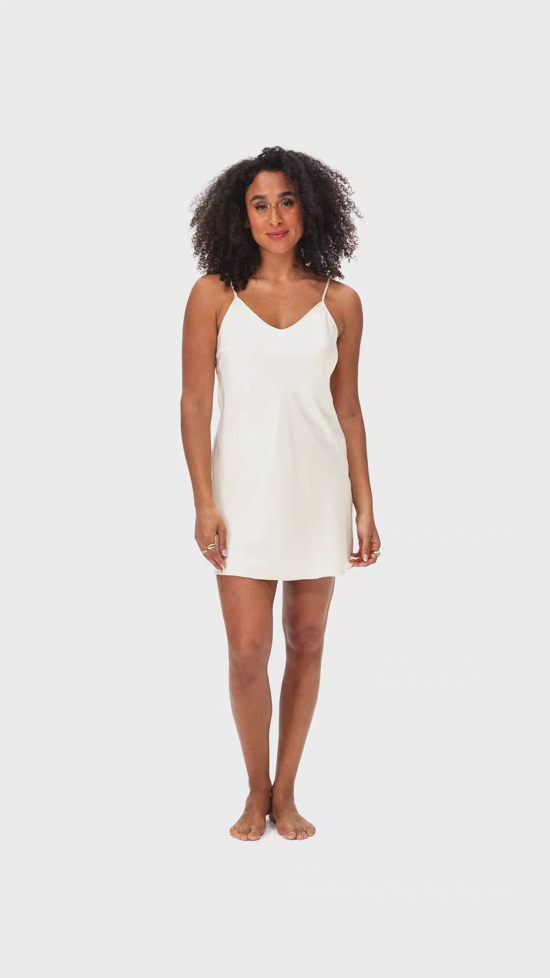 De Satin Chemise Pearled Ivory de nieuwe kleur uit de Daily serie van LingaDore. De chemise is gemaakt van een satijnachtige stof waarvan de spaghettibandjes verstelbaar zijn.
