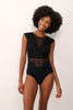 De Black Lace Body Kap Mouw van Promise is een body met een klein kapmouwtje.