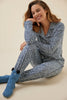 De Pyjama Party-Set Panter van Promise is een 2-delige pyjama set. De set bestaat uit een lange broek en een top met lange mouwen. De blauwe top heeft lange mouwen en knoopsluiting. De blauwe panter print maakt deze pyjama party-set panter gewild. De lange broek heeft een dierenprint met een blauwe streep aan de zijkanten van de pijpen en een elastische band.