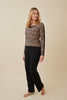 De Pyjama Party-Set Zebra van Promise is een 2-delige pyjama set. De Pyjama Party-Set Zebra bestaat uit een lange broek en een top met lange mouwen en is gemaakt van 100% katoen. De top met zebraprint heeft lange mouwen met een v-hals afgewerkt met kant. De top heeft een zwarte streep over de mouwen lopen. De onderkant van de top is afgewerkt met zwart kant. De zwarte lange broek heeft een elastische band en rechte pijpen.