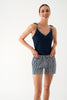 De Pyjama Set Navy Stripes van Promise bestaat uit een hemdje met bandjes en een korte broek.