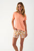 De Pyjama Set Sunset Blossom van Promise bestaat uit een top met korte mouwen en een korte broek.