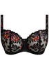De Magdalena Balconette BH Zwart van Fantasie is een opvallende collectie waar luxe en comfort samenkomen. Met ingewikkeld, rijk gestikt, overdrukt borduurwerk in levendige zonsondergangtinten tegen een zwarte basis.